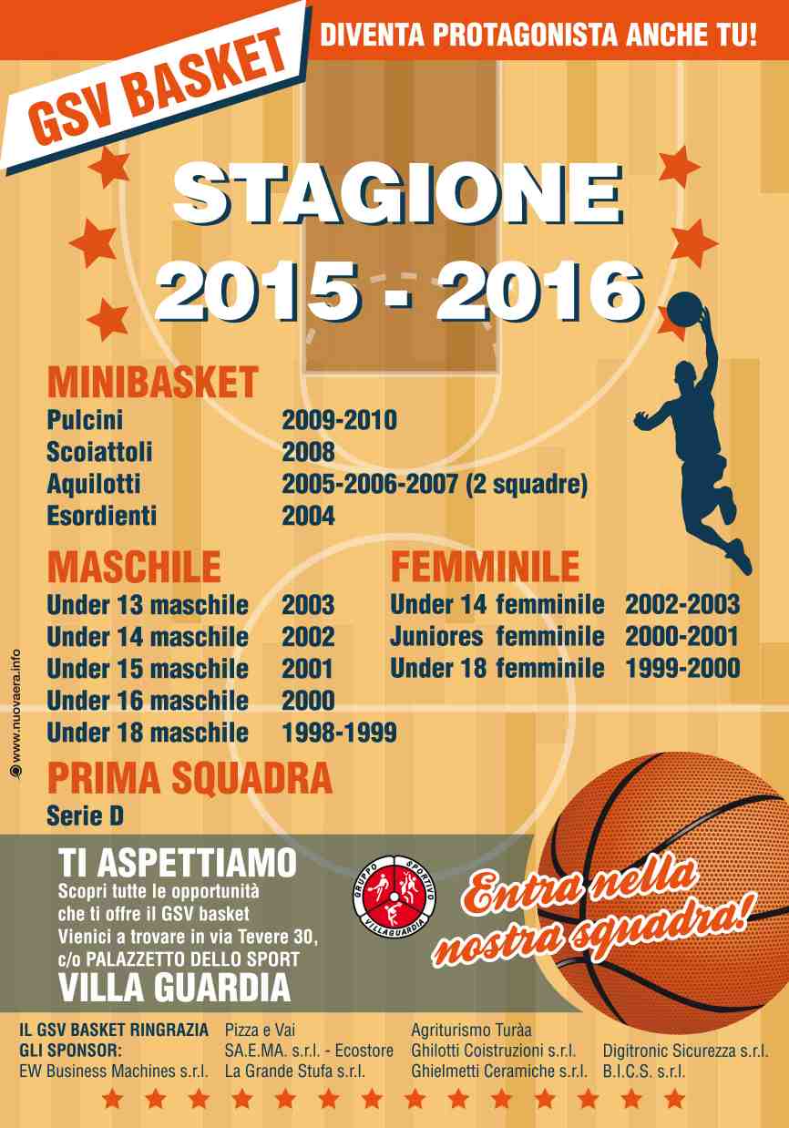 Potete seguire l’attività della sezione Basket sulla pagina Facebook “GSV basket Villa Guardia”.