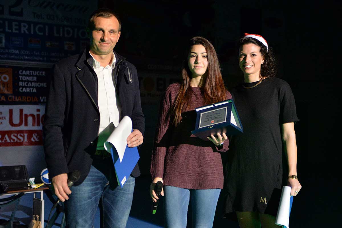 La seconda menzione è stata poi assegnata alla squadra seniores maschile di volley, ad aprile protagonista di una storica promozione in serie D. Introdotti da un video ricordo di quegli indimenticabili attimi, i ragazzi della pallavolo, attraverso le parole di capitan Francesco Zoani, del nuovo coach Andrea Azzolini e dello storico atleta-istruttore Luca Clerici, hanno ripercorso la grande cavalcata e ringraziato soprattutto le numerose giovani atlete del mini volley, sempre presenti al palazzetto in occasione delle gare di campionato e protagoniste di un vero e proprio tifo da stadio.