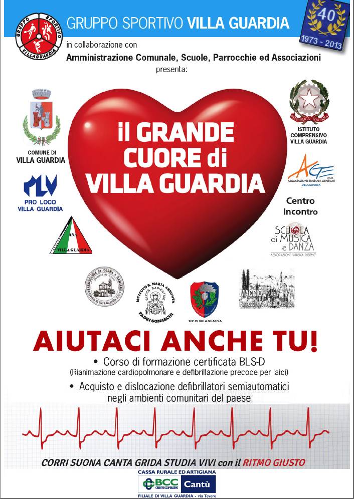 In occasione della settimana per la rianimazione cardiopolmonare, che vedrà gli esperti del S.Anna incontrare gli alunni delle medie durante la mattinata in sala consiliare, Villa Guardia (che con la raccolta fondi organizzata dal GSV è riuscita a finanziare l’acquisto di 11 defibrillatori, oltre ad aver formato decine di operatori volontari) sarà al centro delle speciali iniziative volute dall’Azienda ospedaliera anche nel pomeriggio. Dalle 14.30 alle 19.30, presso la Scuola di musica (in via Europa, a Maccio) si terranno delle dimostrazioni sulle manovre di rianimazione cardioplomonare, aperte al pubblico. Sarà un’occasione per testare da vicino anche la bontà del progetto “Il grande cuore di Villa Guardia” che con impegno e partecipazione ha proiettato il nostro paese al vertice della graduatoria dei comuni maggiormente attrezzati per far fronte nei luoghi pubblici ad eventuali situazioni di arresto cardiopolmonare. Una doppia occasione quindi, per studenti e cittadini, di apprendere informazioni che si possono rivelare fondamentali, e per Villa Guardia un bel riconoscimento da parte dell’Azienda ospedaliera S. Anna.