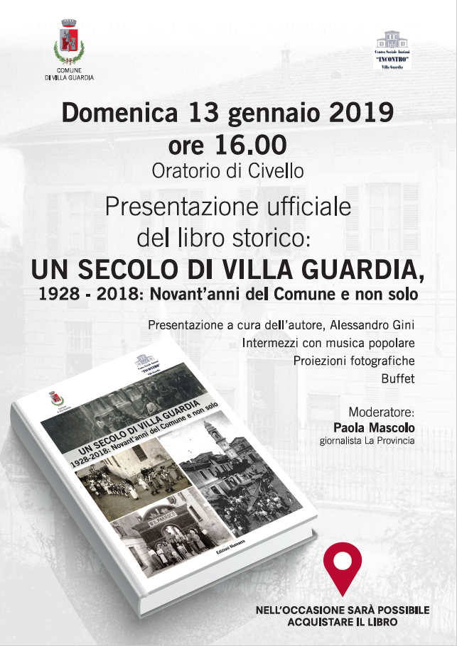 Seconda presentazione pubblica per il libro storico “Un Secolo di Villa Guardia. 1928-2018: novant’anni del Comune e non solo”.