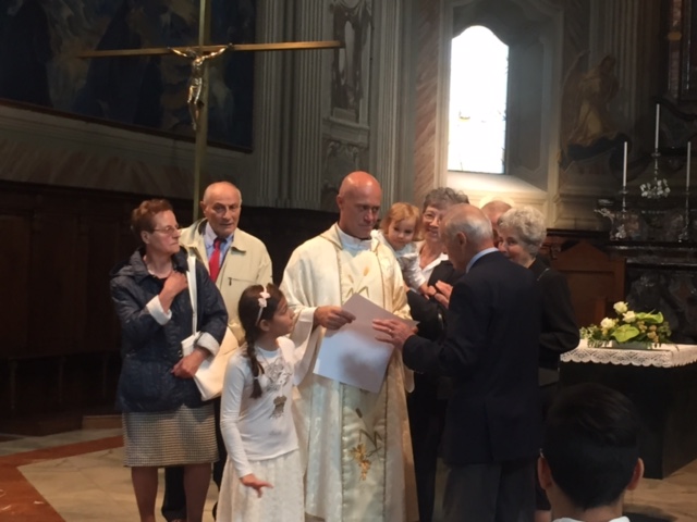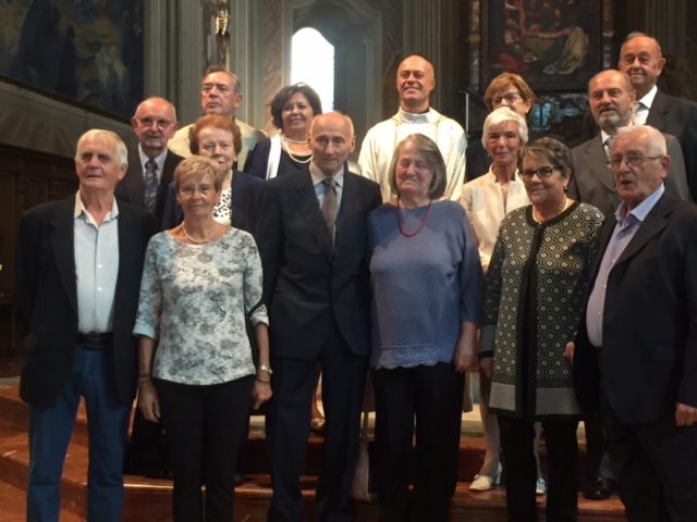 Volti distesi per tutti, con numerose coppie felici nel ricontrarsi ai piedi dell’altare dopo molti anni e un grande applauso tributato da tutti i presenti.