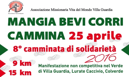 Tutto pronto per l’ottava edizione della Mangia Bevi Corri Cammina, la manifestazione di solidarietà organizzata dall’associazione missionaria Vita del Mondo di Villa Guardia. Il 25 aprile saranno quattro i punti ristoro distribuiti lungo i due percorsi organizzati tra i boschi e i prati di Villa Guardia, Lurate Caccivio e Colverde. Due percorsi emozionanti e avventurosi alla scoperta delle zone incontaminate e suggestive del nostro territorio, uno da 9 km e uno da 15 km, entrambi da percorrere di corsa, a piedi, da soli o in compagnia, impreziositi da quattro postazioni in cui tutti i partecipanti avranno la possibilità di mangiare formaggi, salumi, torte, vino, bibite e altre delizie.