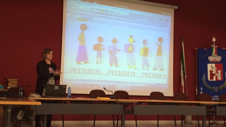 Presentato ieri sera nella sala del Consiglio comunale il nuovo progetto Pedibus. A relazionare i numerosi genitori intervenuti è stato l’assessore all’Istruzione Roberta Bernasconi (nella foto tratta dal profilo Facebook del gruppo Villa Guardia Insieme), che ha fortemente voluto questa prima riunione organizzativa per illustrare il servizio di accompagnamento dei bambini a scuola, a piedi. E così genitori, nonni e volontari interessati ad usufruire del servizio oppure a prestare assistenza, hanno potuto ascoltare tutti i dettagli dell’iniziativa che, come anticipato ieri sera avrà subito nei prossimi giorni il suo primo esperimento pilota. Il 3, 4, 5 giugno, infatti, il Pedibus di Villa Guardia farà il suo esordio. Si tratta in sostanza di un servizio di accompagnamento verso le scuole elementari che prevede alcuni tragitti e apposite stazioni in cui il cordone di bambini, camminando, accompagnato da alcuni adulti che vigileranno sulla comitiva, accoglierà via via i compagni di viaggio, raggiungendo così in allegria e grande indipendenza, la don Milani di Civello.