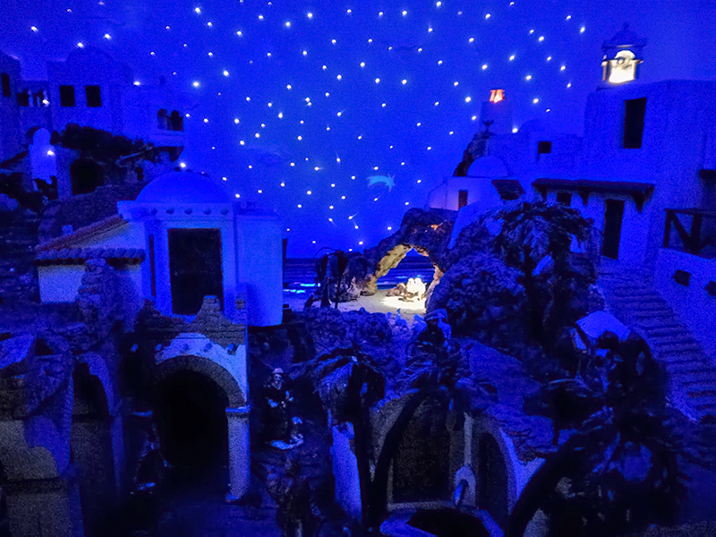 Ogni anno il presepe, totalmente autocostruito, viene rinnovato in ognuna delle sue parti con un minuzioso lavoro di eccellenza artigiana.