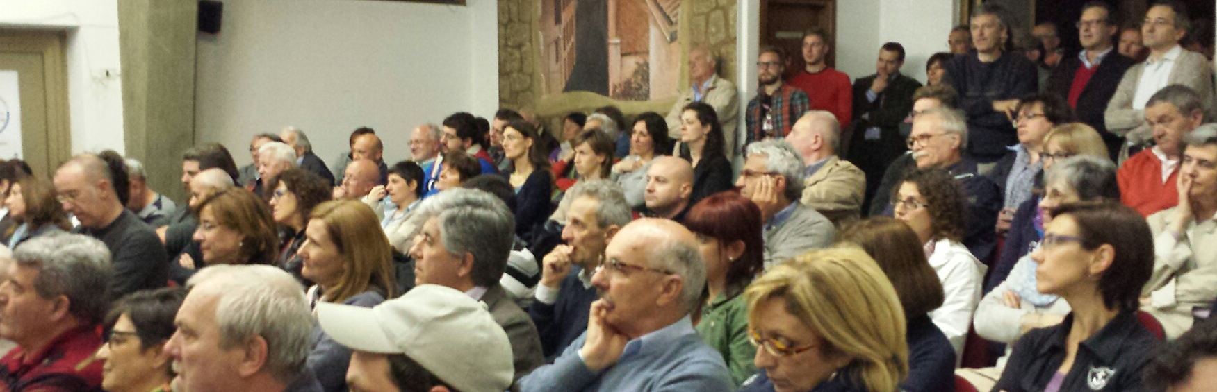 Quasi in contemporanea anche l’assessore ad Ambiente e Sport, Valerio Perroni, candidato sindaco della lista Villa Guardia Insieme, dopo il tour de force nelle associazioni dei giorni precedenti, ha incontrato, presso la sala pubblica del municipio, alcuni amici e sostenitori del nuovo grupppo. Oltre 160 i partecipanti (nella foto), ai quali sono stati presentati i componenti della rinnovata squadra e spiegate le scelte che hanno portato al profondo rinnovamento interno, in termini di logo e nome della lista ma anche in termini di persone. Oltre al candidato sindaco, tra i piu’ applauditi sicuramente Marco Turconi (nella foto sotto, il primo a destra) che ha incisivamente chiuso il proprio momento con una metafora teatrale, spiegando che: “Oggi si gira pagina e si chiude il libro. Cambiano gli attori e sono pronte a nascere nuove idee; quello che non cambia e’ l’ambientazione, il nostro bellissimo paese, e lo stile con cui ci impegnero al massimo per realizzarle”.