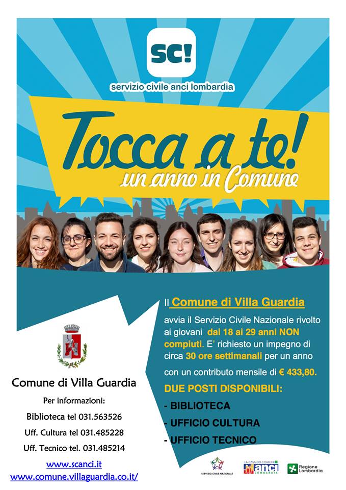 Ancora pochi giorni per cogliere un’opportunità di lavoro e crescita per i giovani di Villa Guardia in cerca di una nuova occasione. Il Dipartimento della Gioventù e del Servizio Civile Nazionale, infatti, ha pubblicato il Bando Ordinario 2017 per la selezione dei volontari di Servizio Civile Nazionale. Il bando è rivolto ai giovani dai 18 ai 29 anni non compiuti ed è previsto un rimborso spese quantificato in € 14,46 giornalieri, per un totale di € 433,80 lordi mensili. Anche il Comune di Villa Guardia ha deciso di aderire a questa iniziativa, mettendo a disposizione due posti. I giovani che aderiranno al Servizio civile nazionale e che saranno ingaggiati dal Comune di Villa Guardia saranno messi a disposizione dell’Ufficio Cultura e dell’Ufficio Tecnico.
