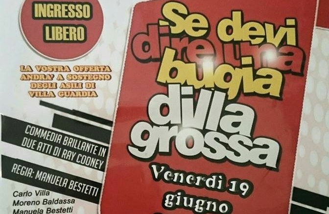 Appuntamento per venerdì sera alle 21.15 per gli amanti del teatro. Il rendez-vous è fissato al parco comunale G. Garibaldi di Villa Guardia, dove la compagnia teatrale “Il Ruscello” di Olgiate Comasco porterà in scena lo spettacolo “Se devi dire una bugia, dilla grossa”, una commedia brillante in due atti, di Ray Cooney. Diretti dalla brava regista Manuela Bestetti, sul palco dell’area feste di villa Balestrini si alterneranno gli attori Carlo Villa, Moreno Baldassa, Manuela Bestetti, Emanuela Zuccari, Alberto Piatti, Federica Frangi, Alvaro Calabresi, Fabio Bestetti, Renato Spina, Maria Arrigo e Anna Colombo (aiuto regista).